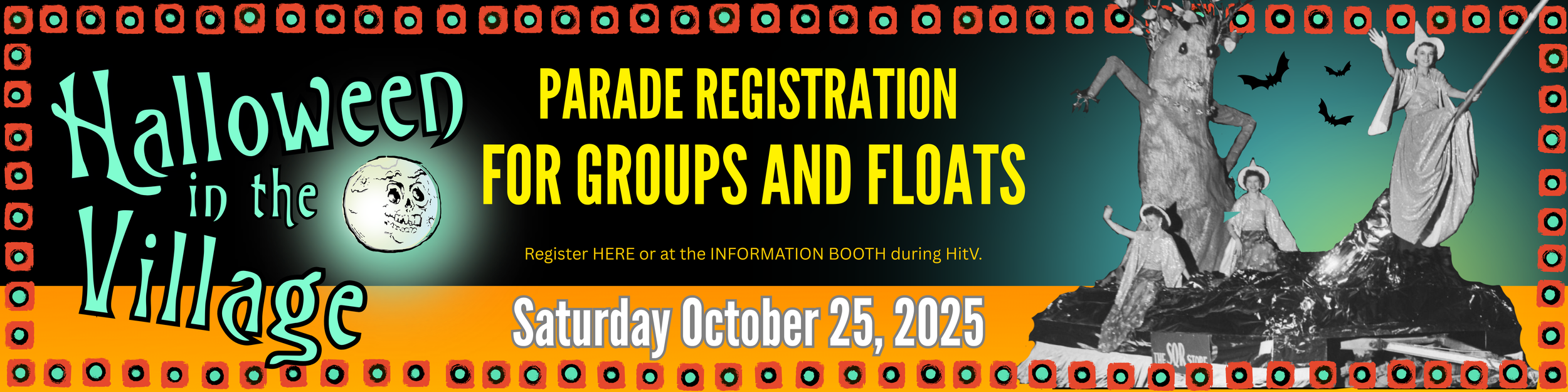 Or register at Halloween in the Village Saturday October 25th at our PARADE REGISTRATION BOOTH on the Wortley YMCA grounds from 1:00 - 5:00 pm or at the Parade staging area on Byron Ave E at Wortley Rd from 5:00 - 5:30pm.